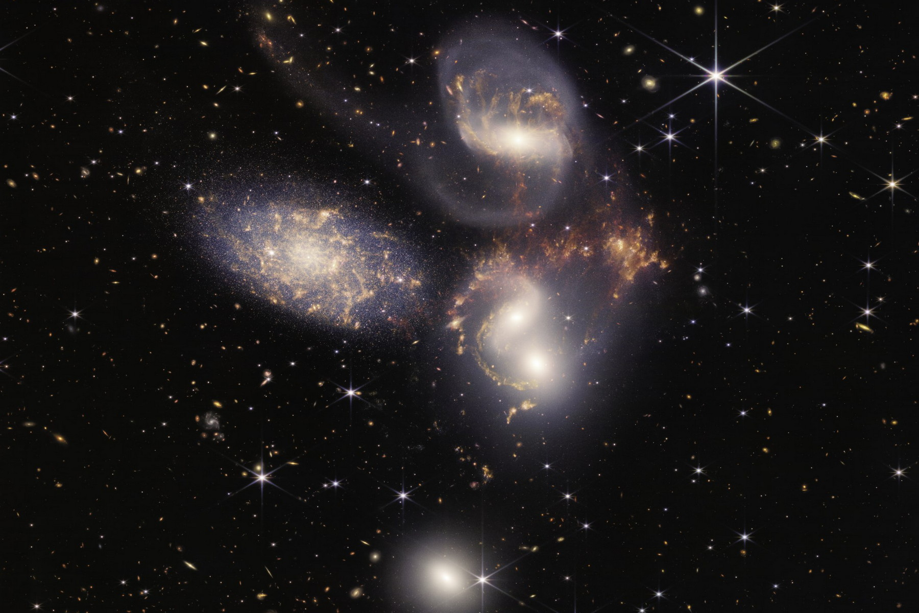 Stephanův kvintet okem Vesmírného dalekohledu Jamese Webba. (foto: NASA, ESA, CSA, STScI, CC BY-SA 4.0)