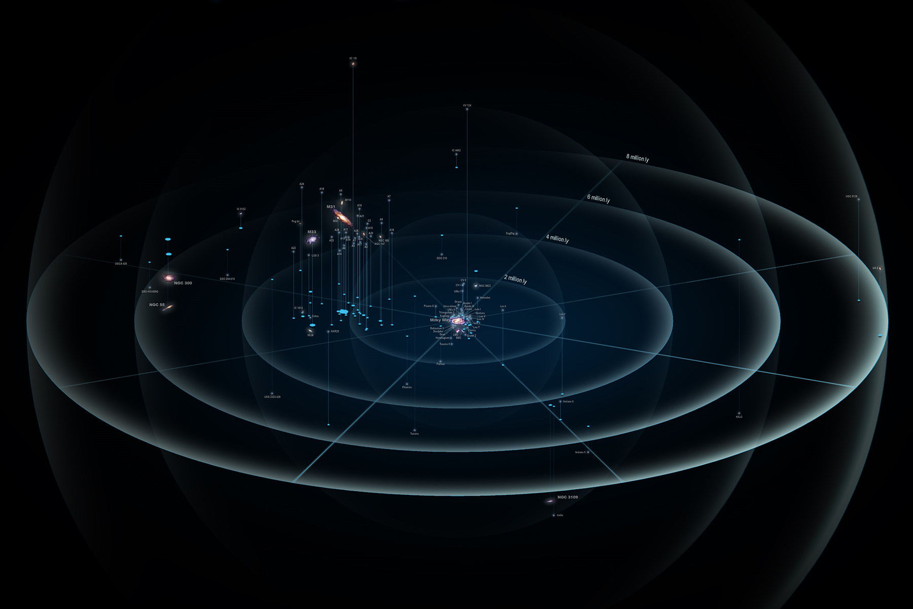 Vizualizace velikosti Místní skupiny galaxií. (ilustrace: Wikimedia Commons, Antonio Ciccolella, CC BY-SA 4.0)
