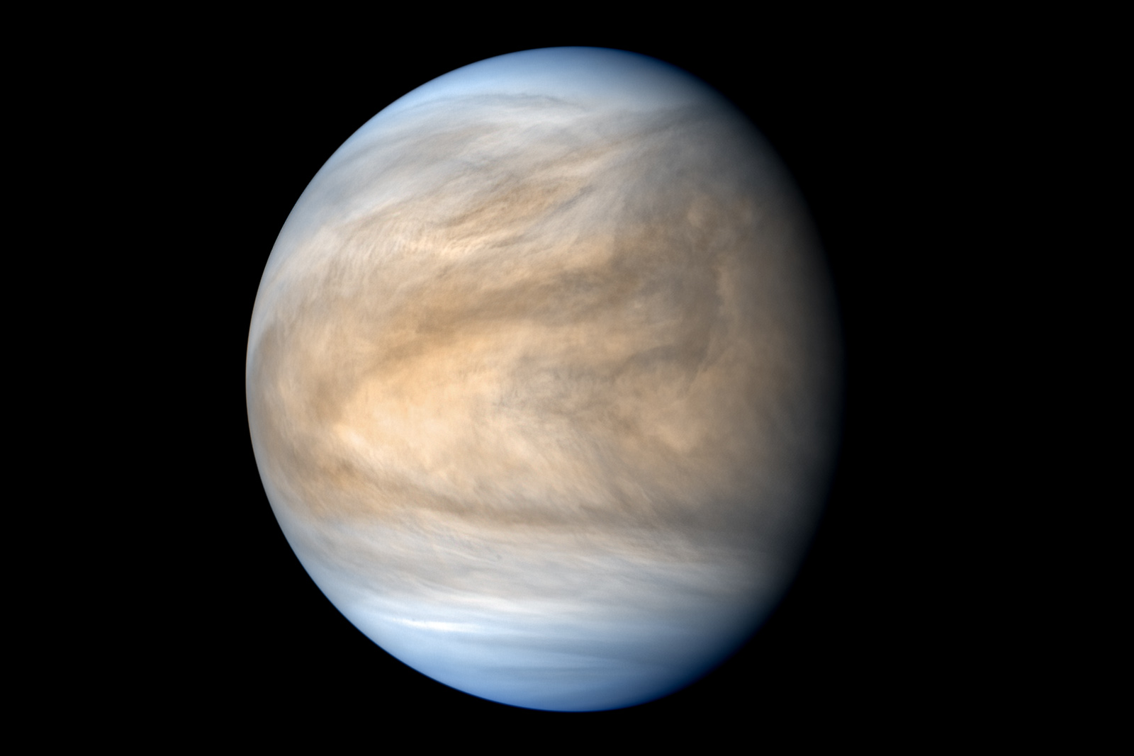 Vnějším pozorovatelům se Venuše může jevit jako dvojče Země. Snímek pořídila vesmírná sonda Japonské kosmické agentury Akacuki, která od roku 2015 provádí dálkový průzkum povrchu planety. (foto: Flickr, JAXA/ISAS/DARTS, Kevin M. Gill, CC BY 2.0)