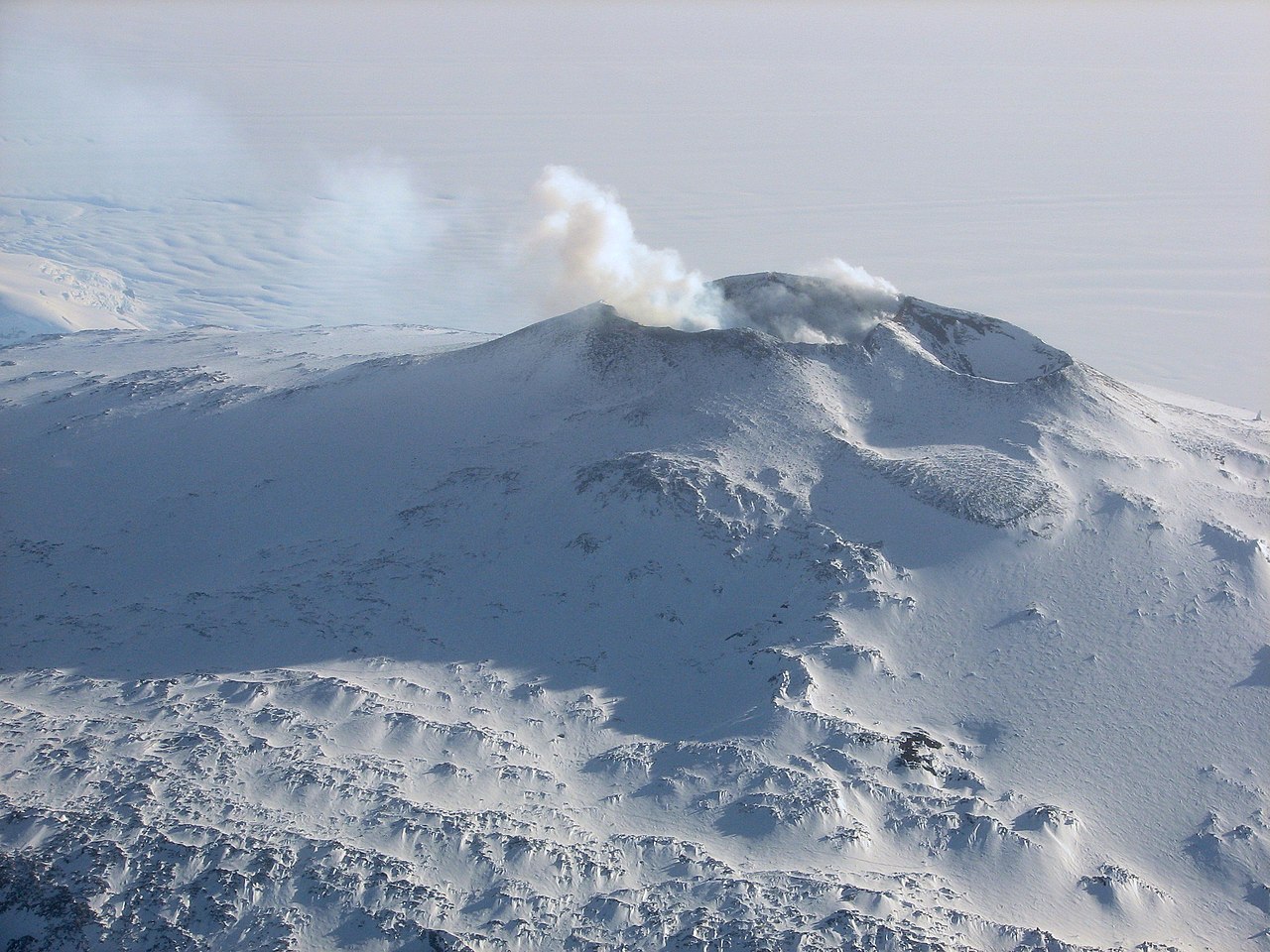 Mount Erebus v Antarktidě je jednou z mála aktivních sopek zamrzlého kontinentu