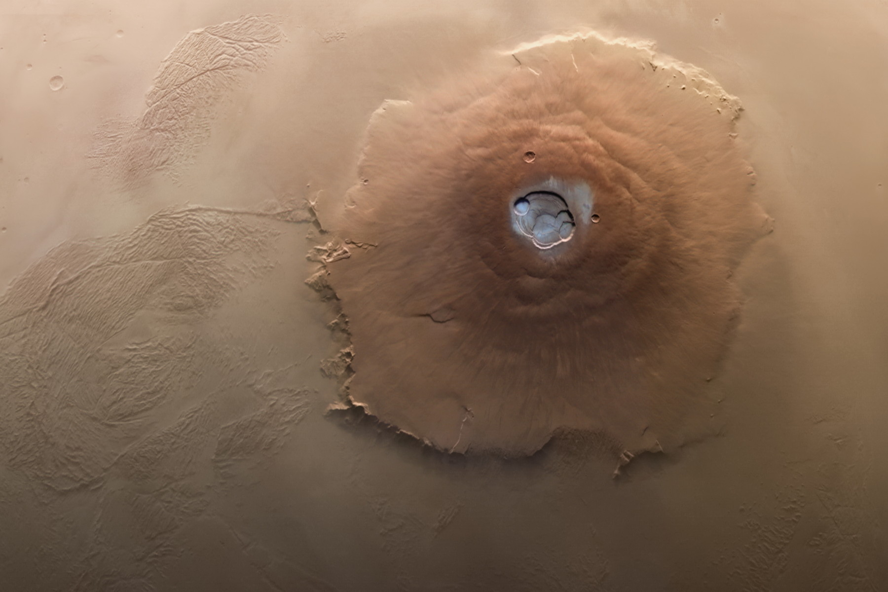 Olympus Mons okem planetární sondy Mars Express. (foto: Wikimedia Commons, ESA/Andrea Luck, CC BY 2.0)