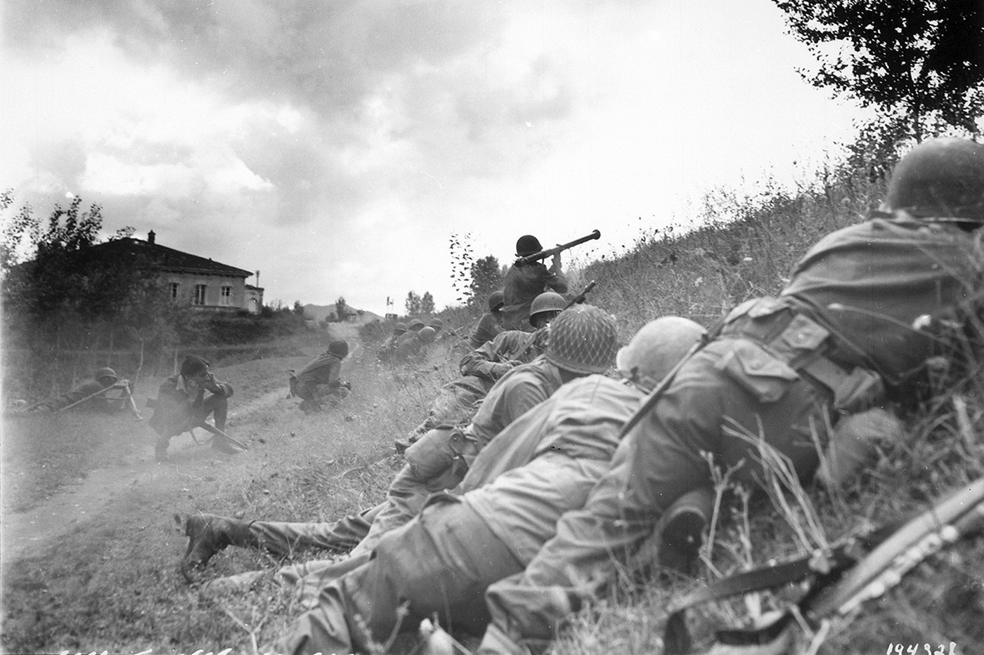 Americký pěšák se chystá vypálit z bazooky proti německému kulometnému hnízdě kdesi na italské frontě. (foto: Wikimedia Commons, U.S. Army, PDM 1.0)
