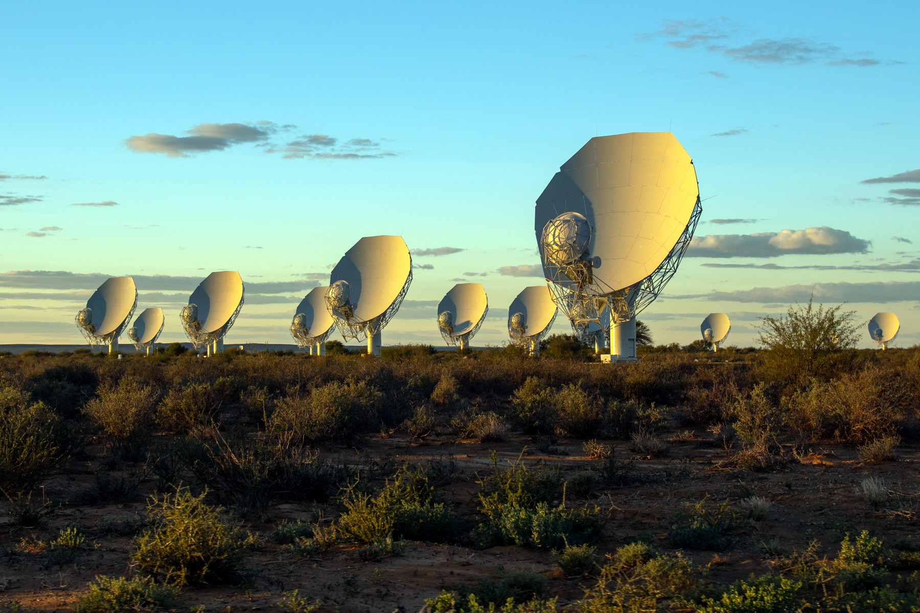 Klíčovou roli při objevu obří rádiové galaxie sehrála jihoafrická síť radioteleskopů MeerKAT. (foto: Wikimedia Commons, SKAO/SARAO, CC BY 3.0)