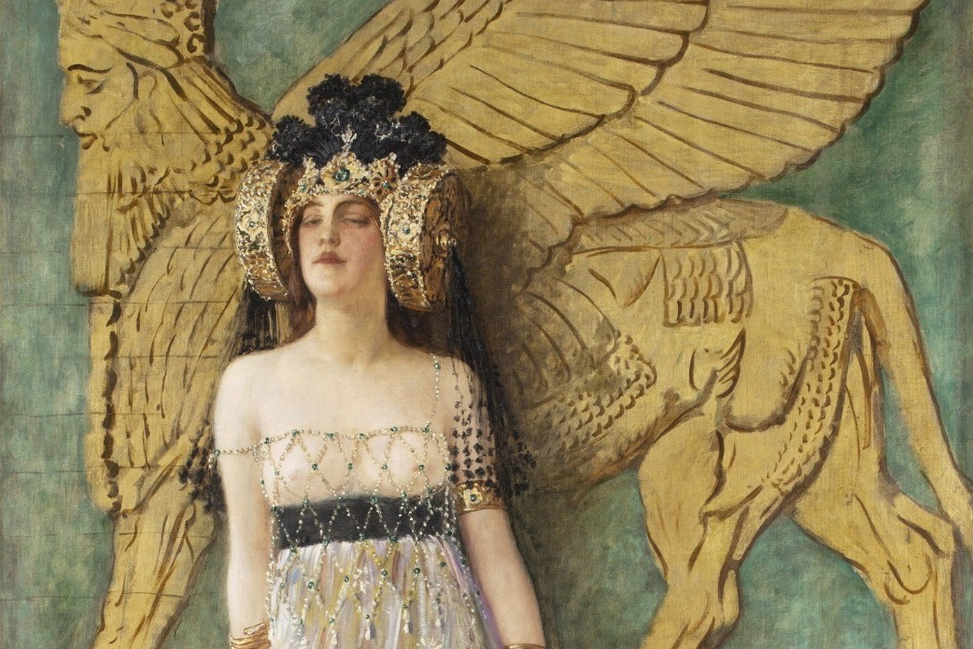 V některých pramenech Naqi'a splývá s panovnicí, která nechala vystavět slavné babylónské zahrady: královnou Semiramis (na obraze od italského malíře přelomu 19. a 20. století) (ilustrace: Wikimedia Commons, Cesare Saccaggi, PDM 1.0)