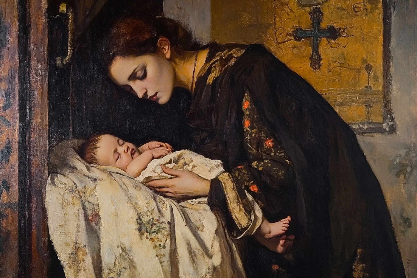 První zařízení, které by se dalo přirovnat k dnešním babyboxům a popsat slovy otočná kolébka, se objevilo roku 1188 ve francouzské nemocnici v Marseille. (ilustrace: Midjourney AI, PDM 1.0)