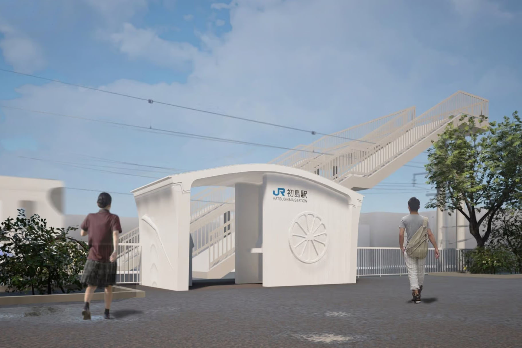 Vizualizace 3D tištěné vlakové zastávky Hatsušima v Aridě. (zdroj: West Japan Railway Company, CC BY-SA 4.0)