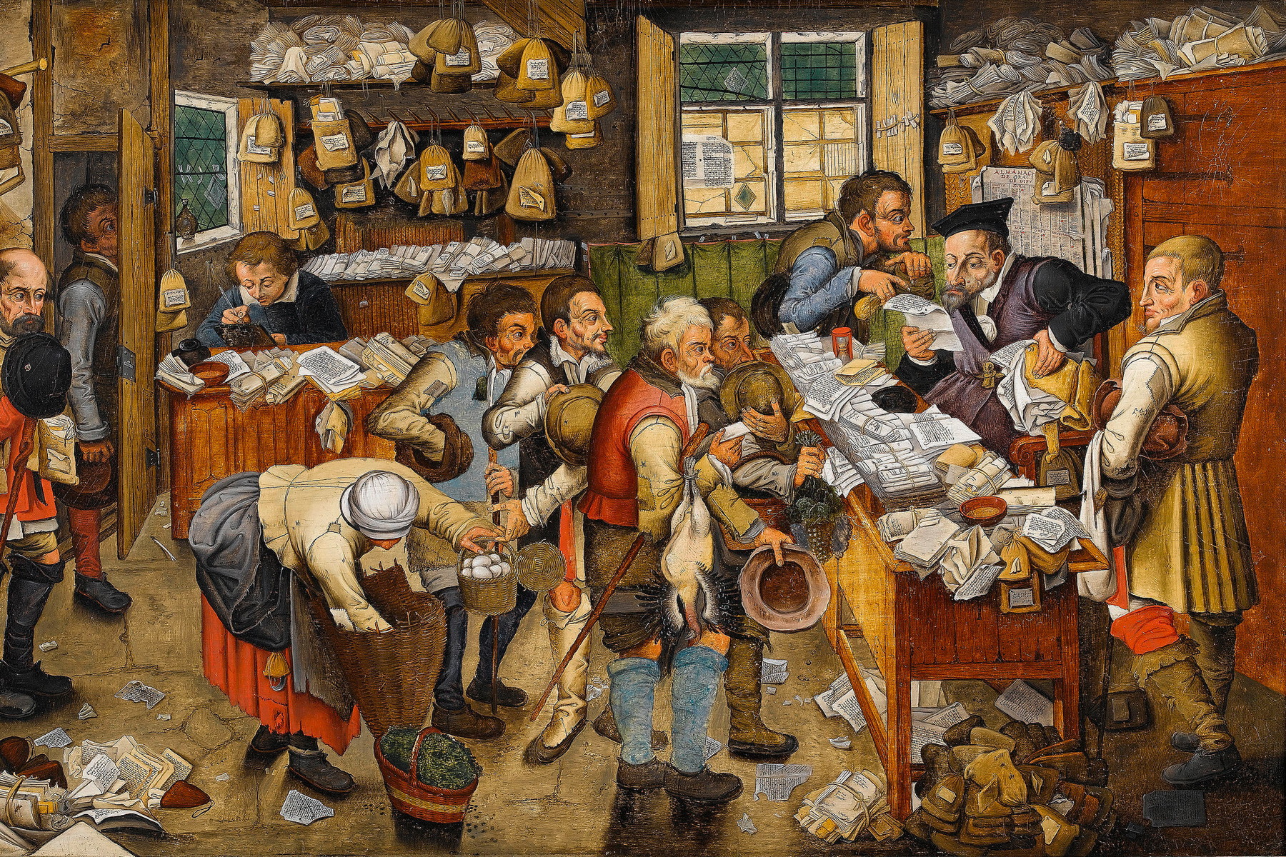 Zalepit rozpočet ztenčený nekonečným válčením? Umravnit poddané, aby si tolik nevyskakovali? Nebo prostě jen využít mocenské převahy? Stačí jediné: zvýšit daně! (ilustrace: Wikimedia Commons, Pieter Brueghel the Younger, PDM 1.0)