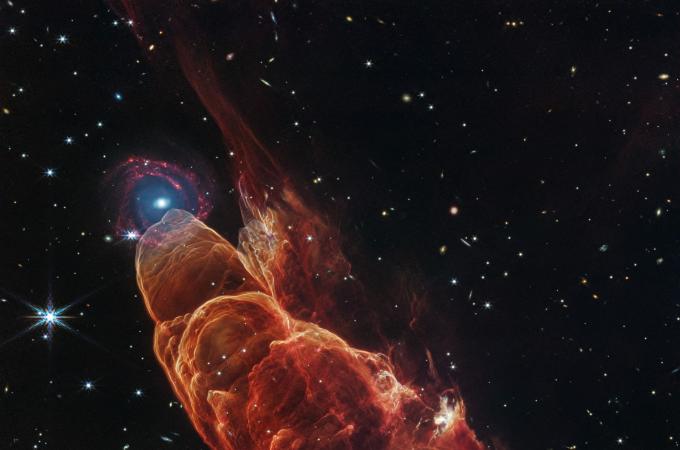 Webbův teleskop demaskoval záhadný objekt na špici Kosmického tornáda