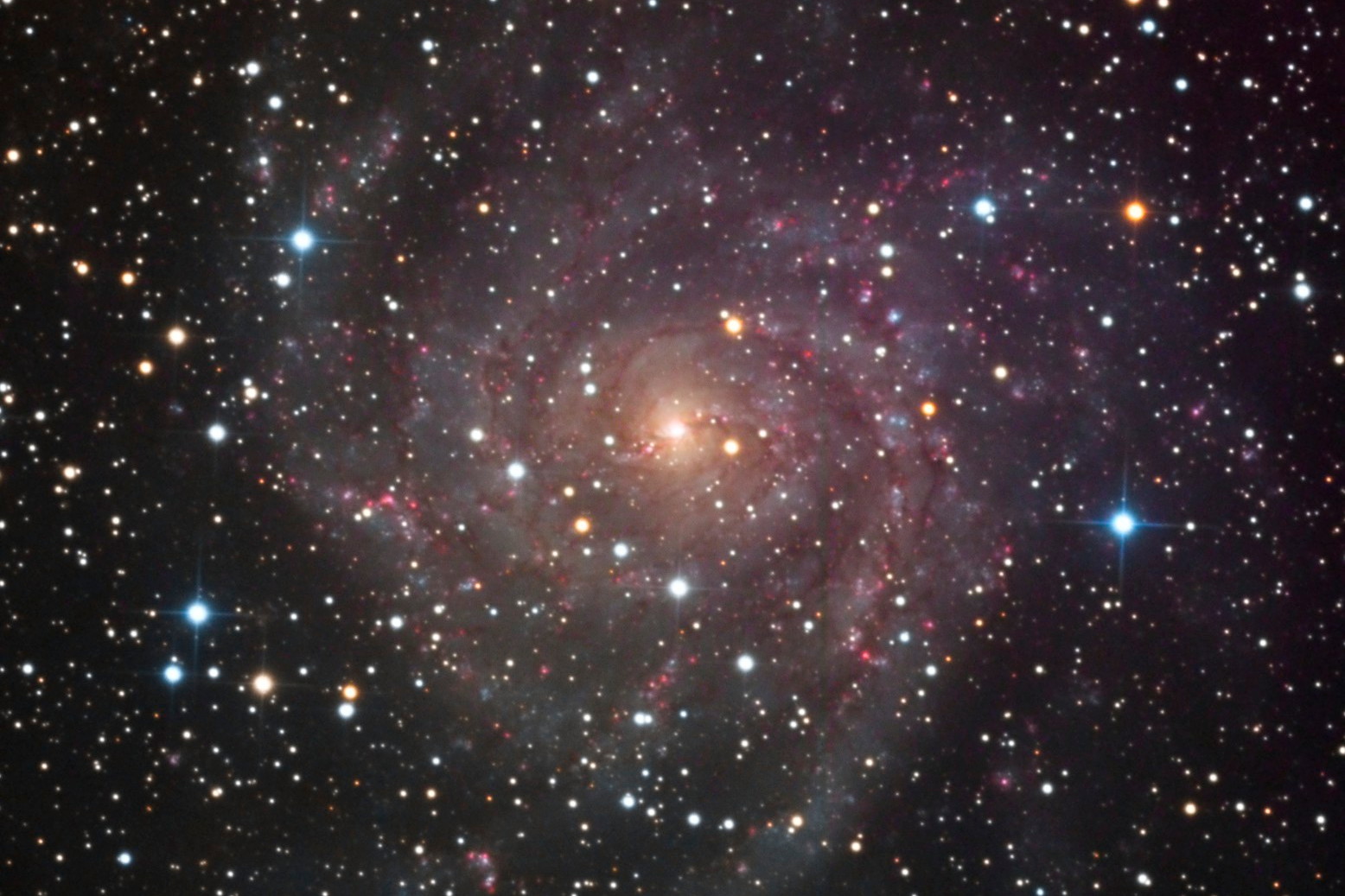• Galaxie IC 342 se při pohledu ze Země promítá do roviny disku našeho vlastního hvězdného ostrova, což její pozorování ztěžuje. (foto: Wikimedia Commons, Sean Curry, CC BY-SA 3.0)