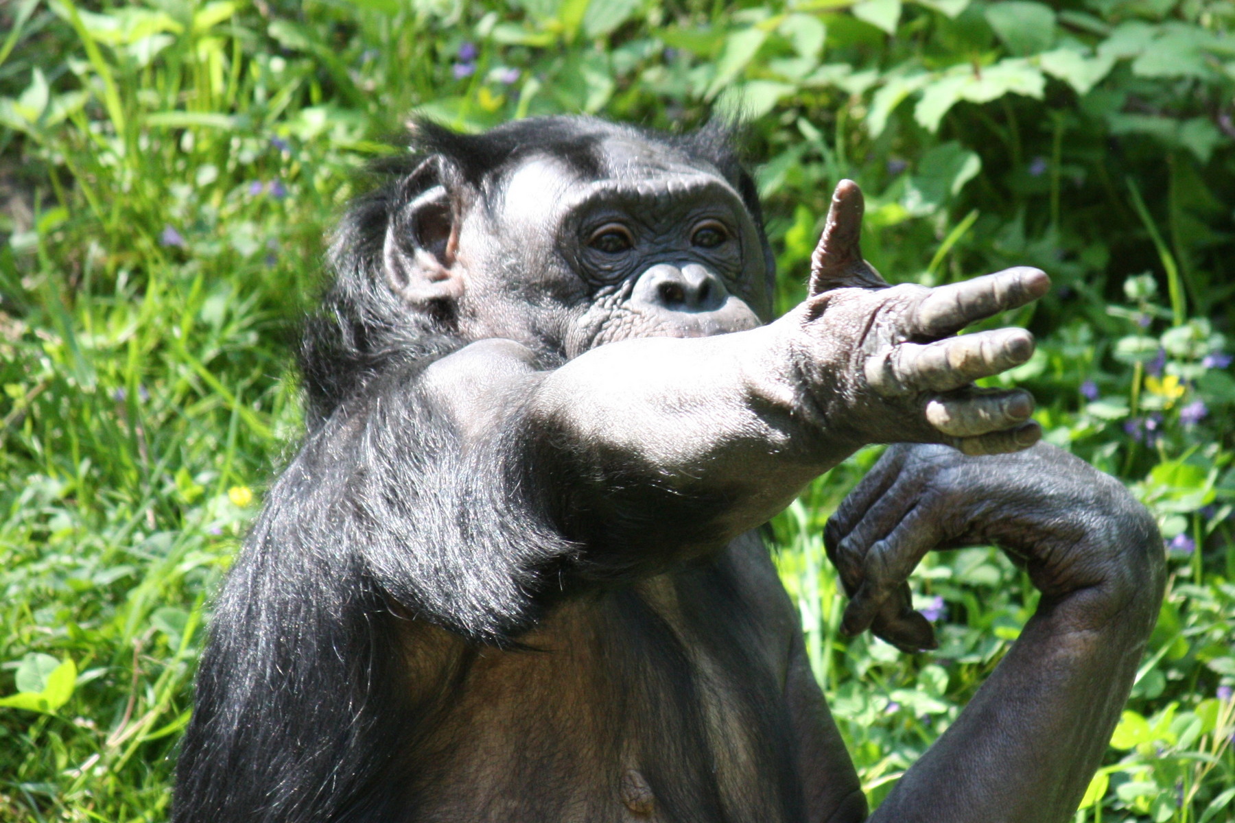 Bonobové skládají zvuky jako lidé. Vědci u nich objevili pokročilou formu komunikace. (ilustrační foto: Wikimedia Commons, Ltshears, CC BY-SA 3.0)