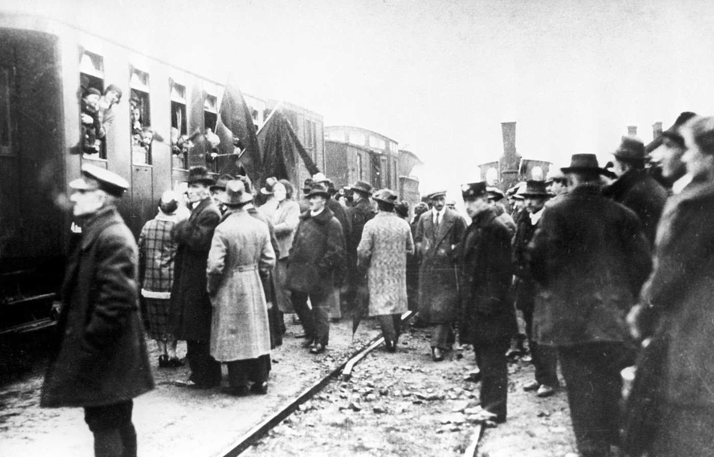 Skupina československých dělníků mířících do Sovětského svazu z nádraží v Žilině. (foto: Profimedia/Sputnik)