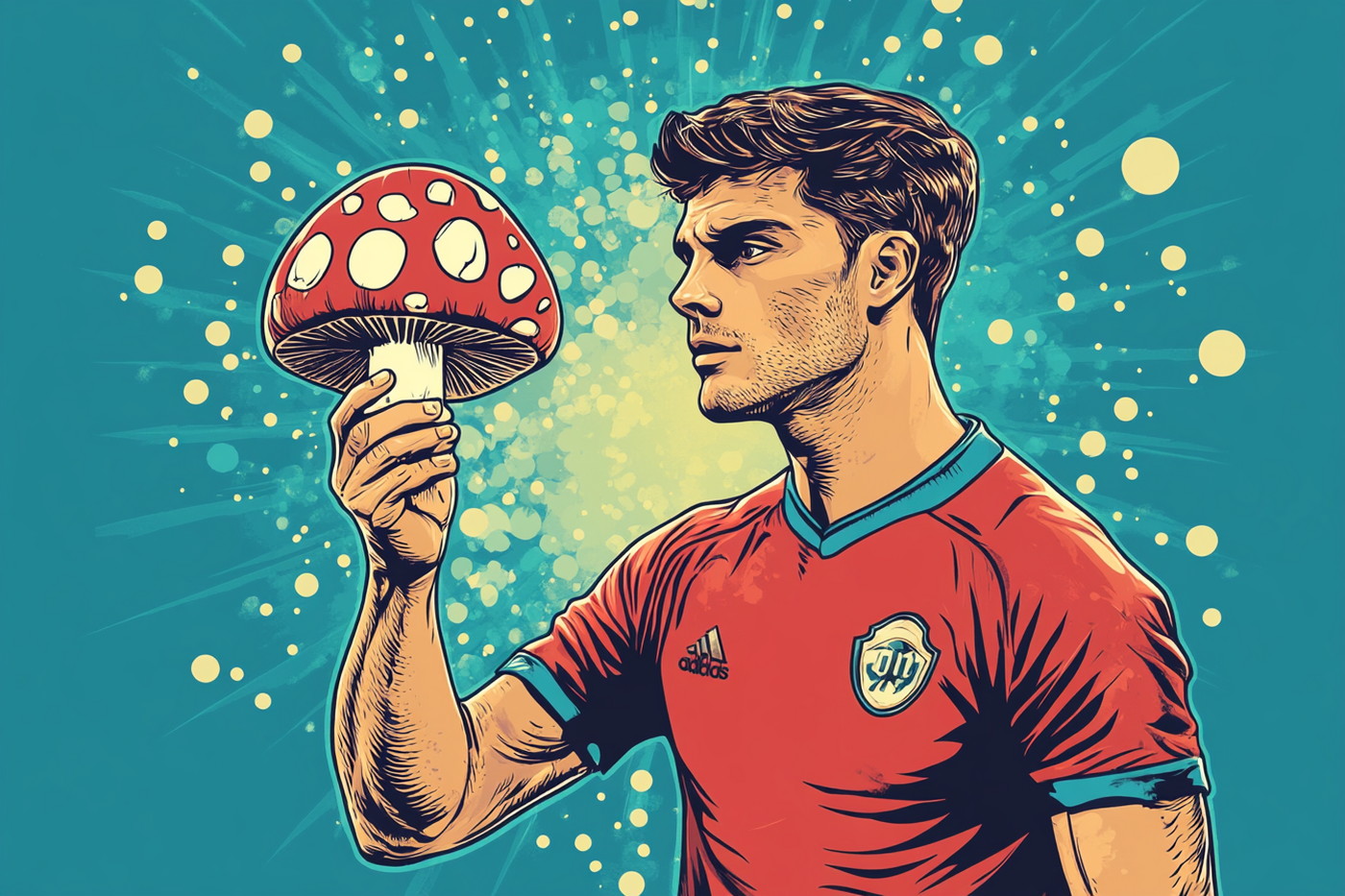 Psilocybin, psychoaktivní látka obsažená v tzv. magických houbách, se ukazuje jako účinný nástroj na opravu poraněného mozku. (ilustrace: Midjourney AI, PDM 1.0)