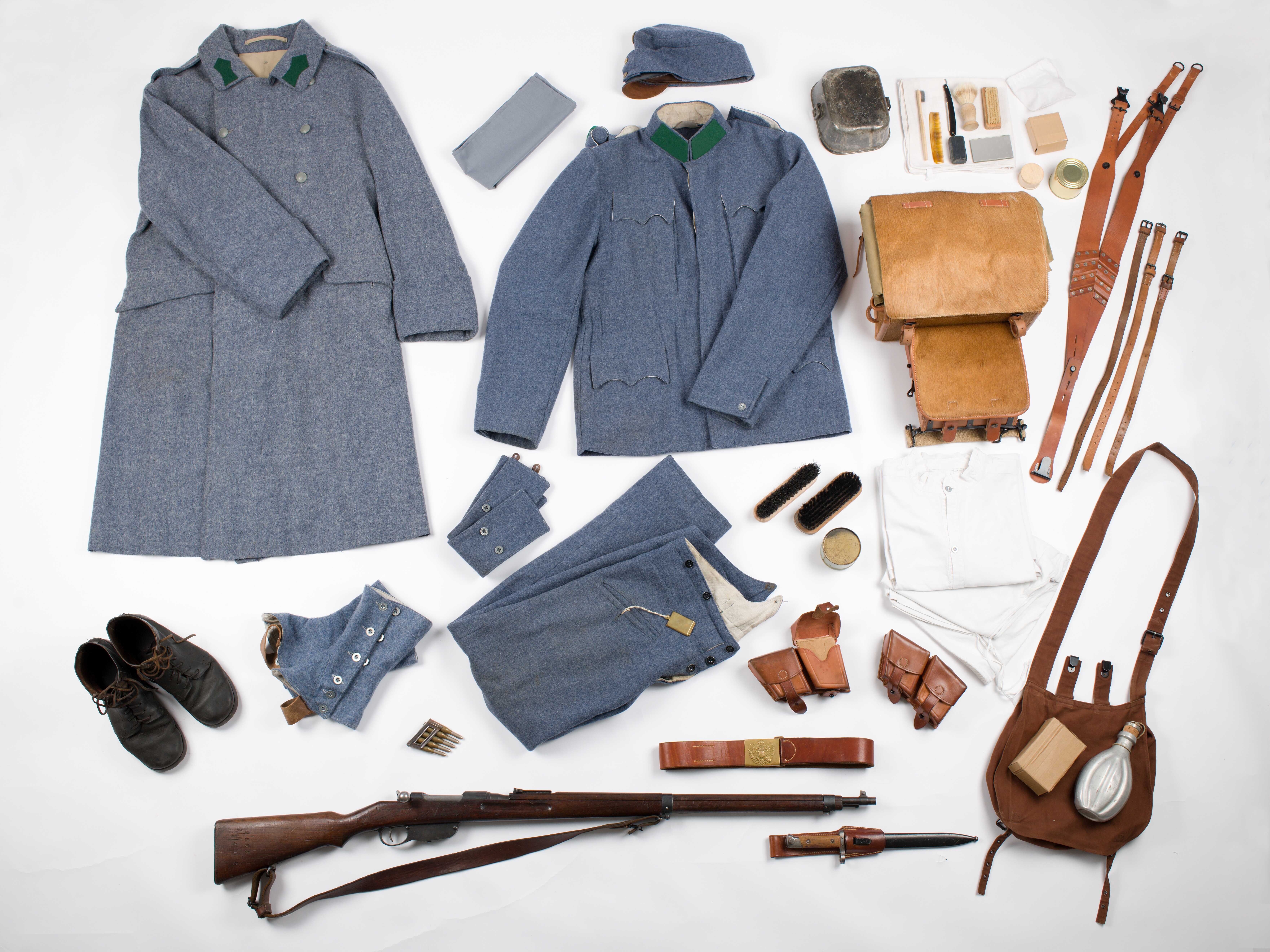 Výstroj vojína 5. praporu polních myslivců, rok 1917. (foto: Martin Tichý - se souhlasem k publikování)