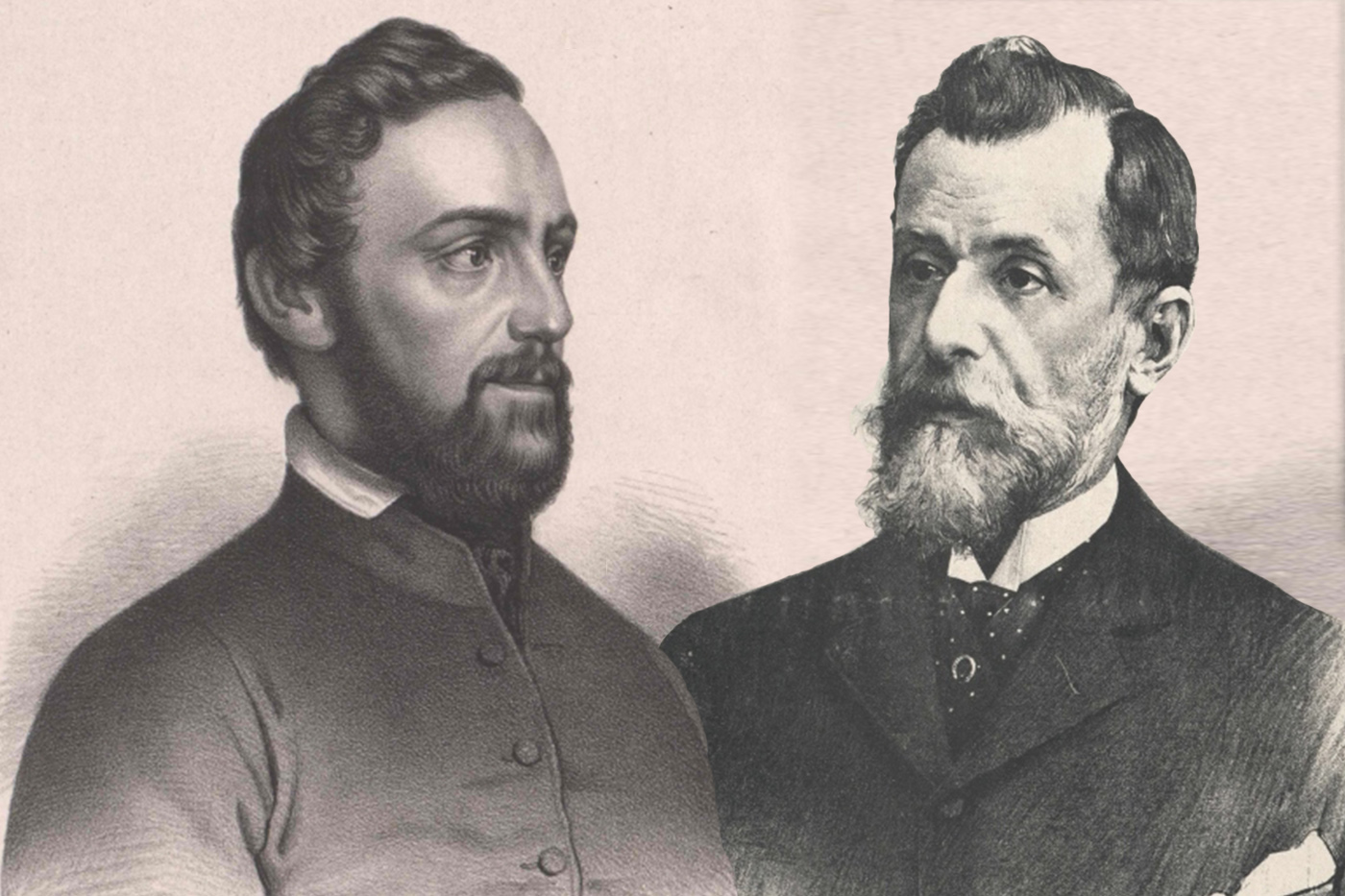 František Ladislav Rieger (vlevo) by zástupcem staročeské strany. Za české Němce vyjednával podmínky vzájemného soužití Ernst von Plener (vpravo). (ilustrace: Wikimedia Commons, PDM 1.0)