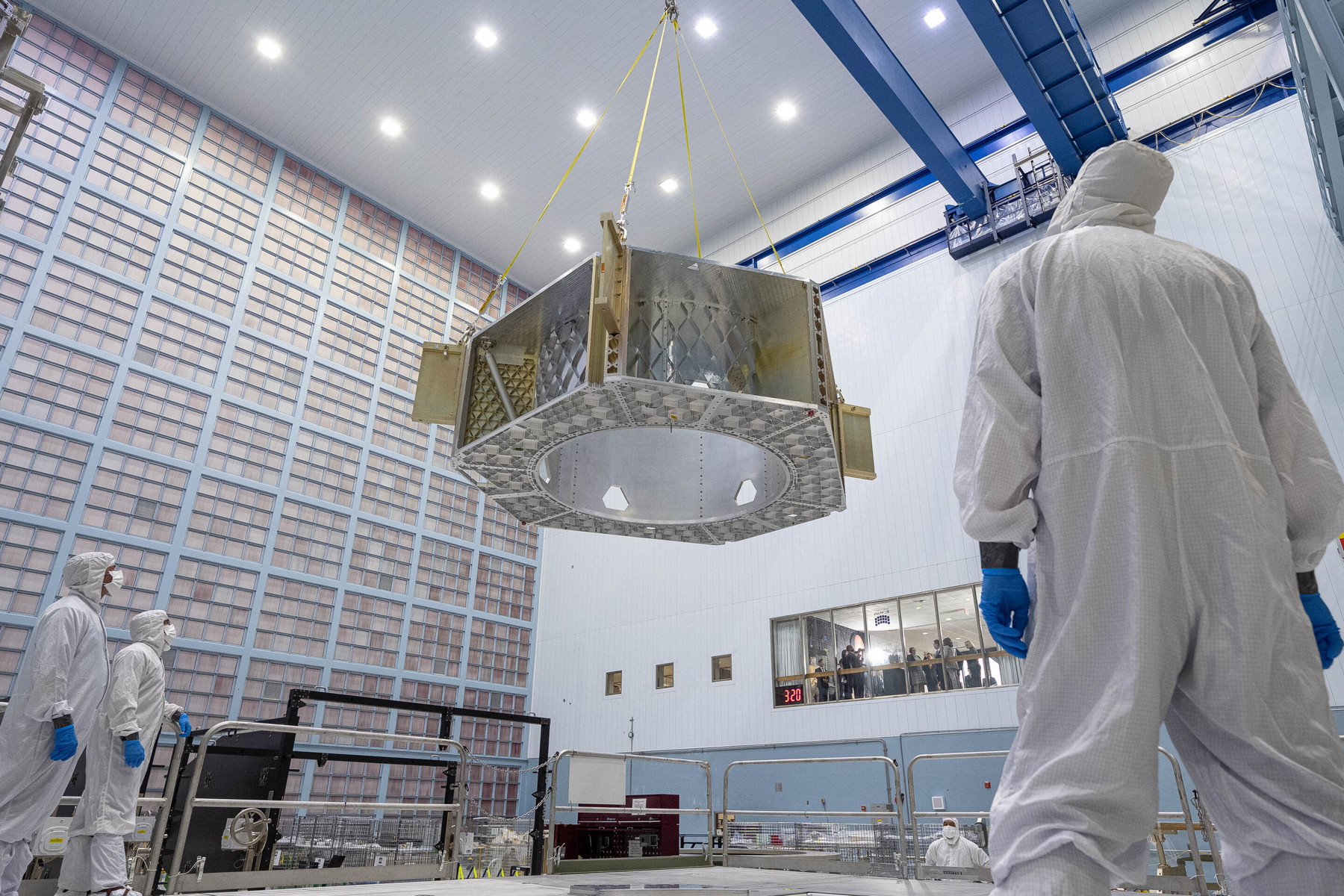 Primární konstrukce vesmírného dalekohledu Nancy Grace Romanové během přesunu do čisté místnosti v Goddardově středisku vesmírných letů NASA. (foto: NASA, CC BY 4.0)