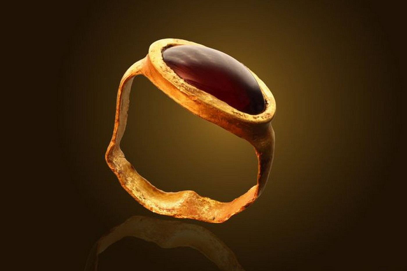 Zlatý prsten s granátem, objevený ve starověkém Jeruzalémě. (foto: City of David, Eliyahu Yanai, CC BY-SA 4.0)