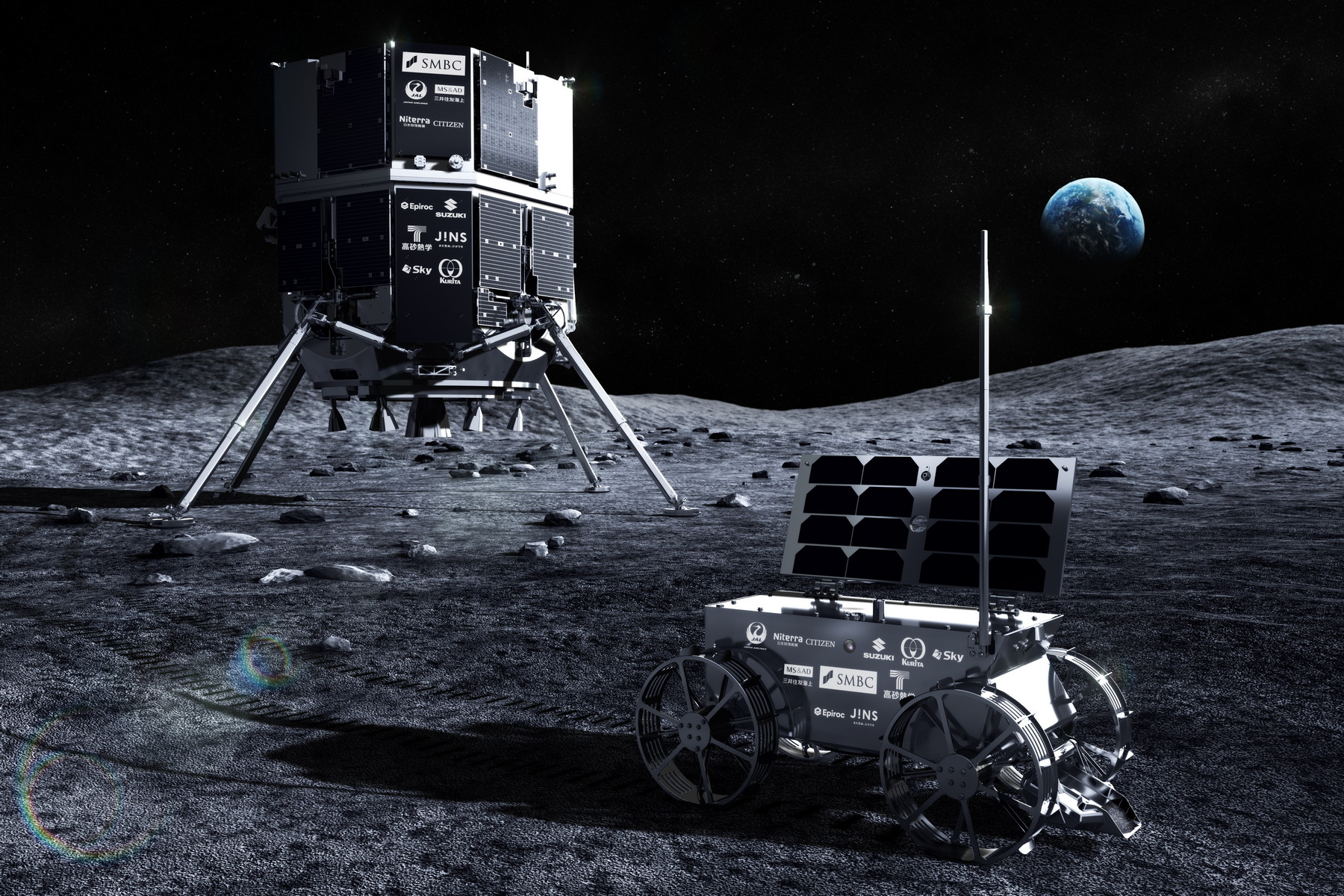 Vizualizace japonského modulu Resilience a miniaturního roveru Tenacious. (ilustrace: ESA/ispace, CC BY 4.0)