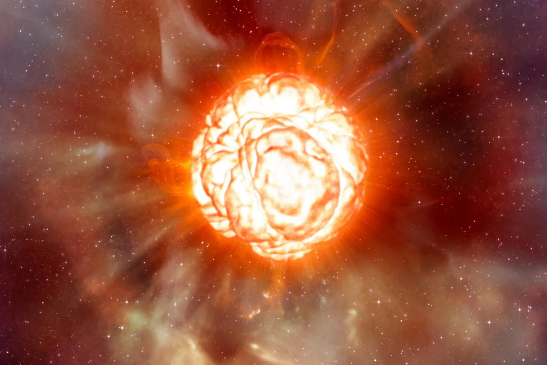 Podle dosavadního poznání se Betelgeuse nachází ve fázi rudého veleobra a je na cestě k tomu stát se supernovou typu II – stálice tohoto typu obvykle končí jako neutronové hvězdy, nebo černé díry. (ilustrace: ESO/L. Calçada, CC BY-SA 4.0)