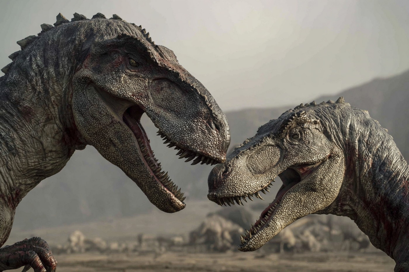 Teropodní dinosauři se zřejmě oddávali monumentálním námluvním tancům. (ilustrace: Midjourney AI, PDM 1.0)