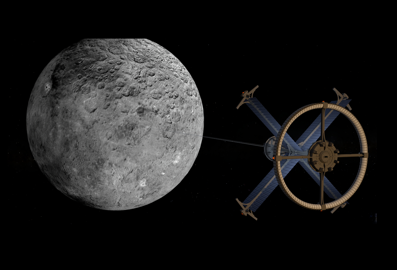 Orbitální výtah by mohl usnadnit těžbu surovin na trpasličí planetě Ceres