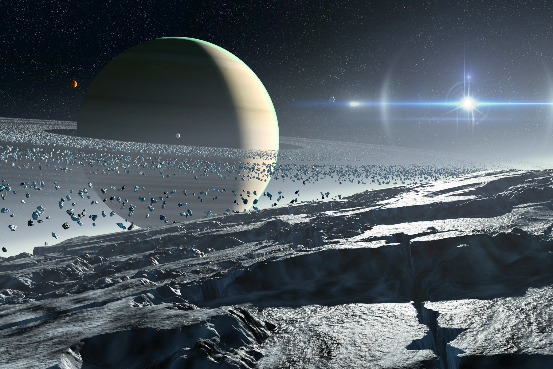 V oceánech pod povrchem měsíců velkých planet bychom mohli najít jednoduchý život. (ilustrace: Shutterstock)