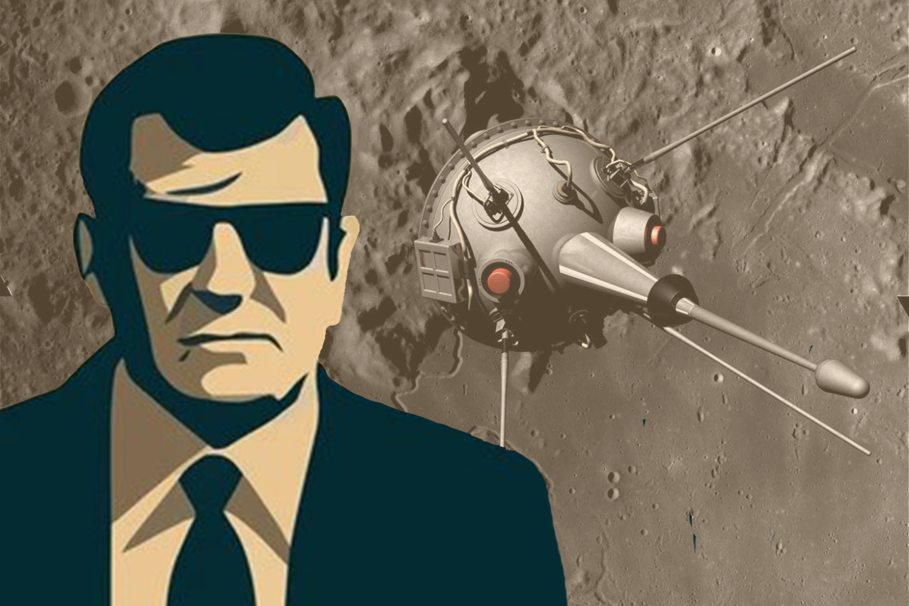 V roce 1959 vystavovali Sověti za oceánem „maketu“ nosiče Luna i stejnojmenné družice. A CIA se k ní chtěla za každou cenu dostat. (ilustrace: Midjourney AI, PDM 1.0)