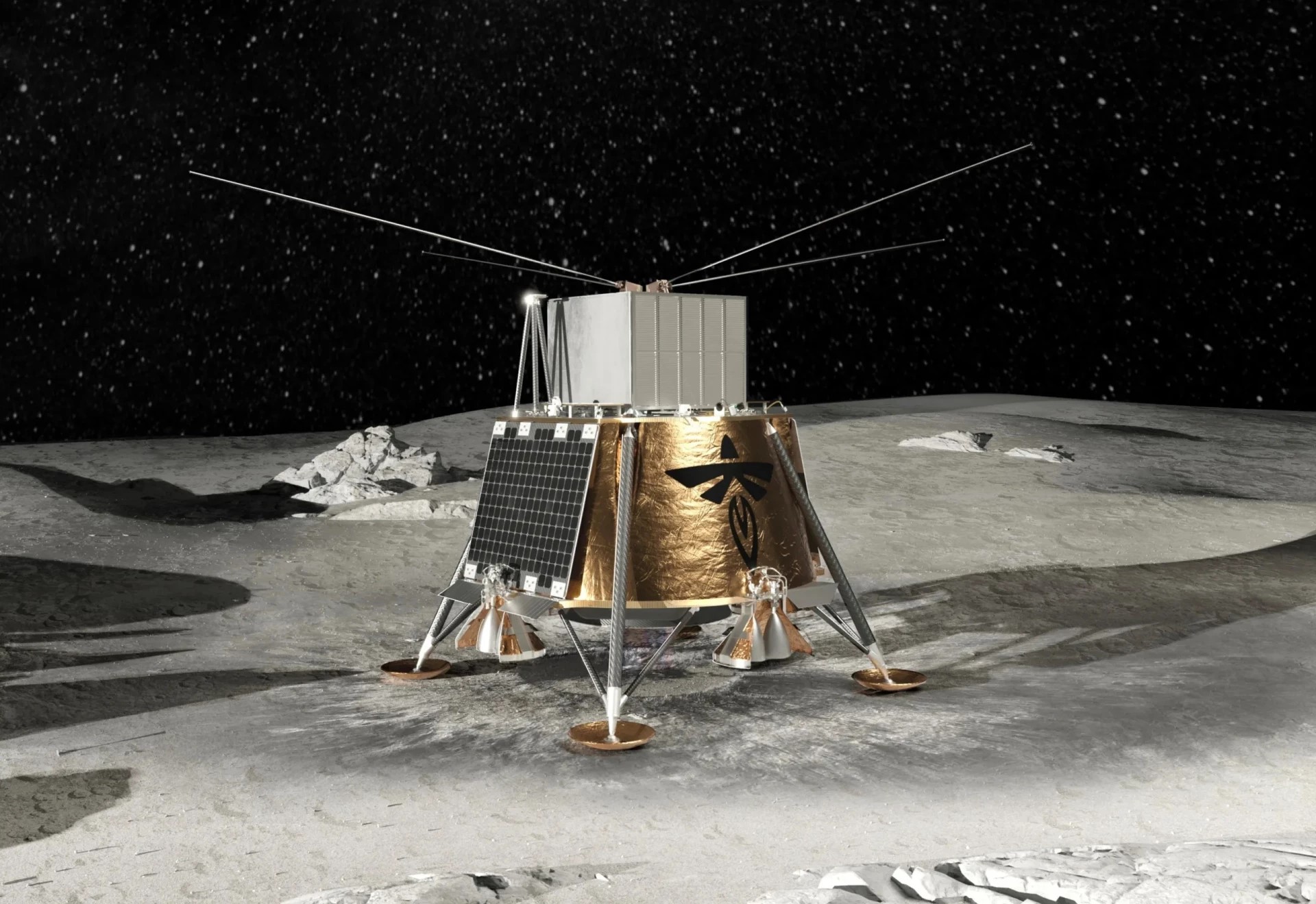 Radioteleskop LuSEE-Night instalovaný na landeru Blue Ghost 2. (ilustrace: Brookhaven National Laboratory, CC BY-SA 4.0)
