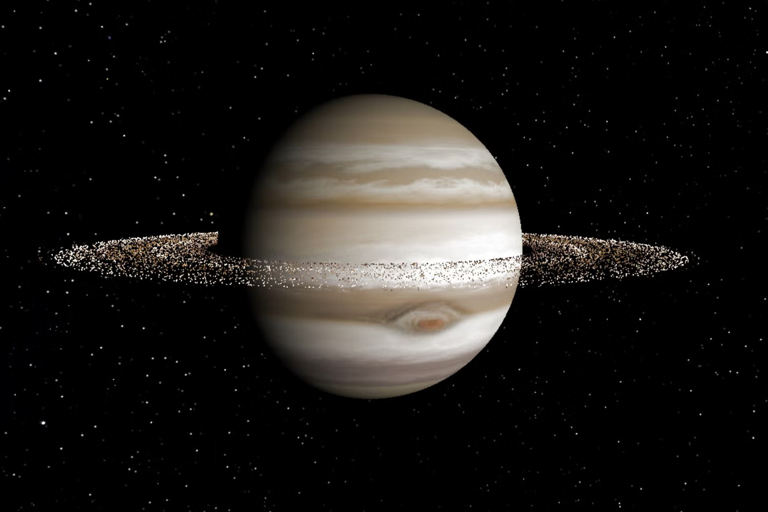 Také Jupiter obklopují prstence. Jsou však mnohem méně výrazné než u zbylých obřích planet. (ilustrace: UC Riverside, Stephen Kane, CC BY-SA 4.0)