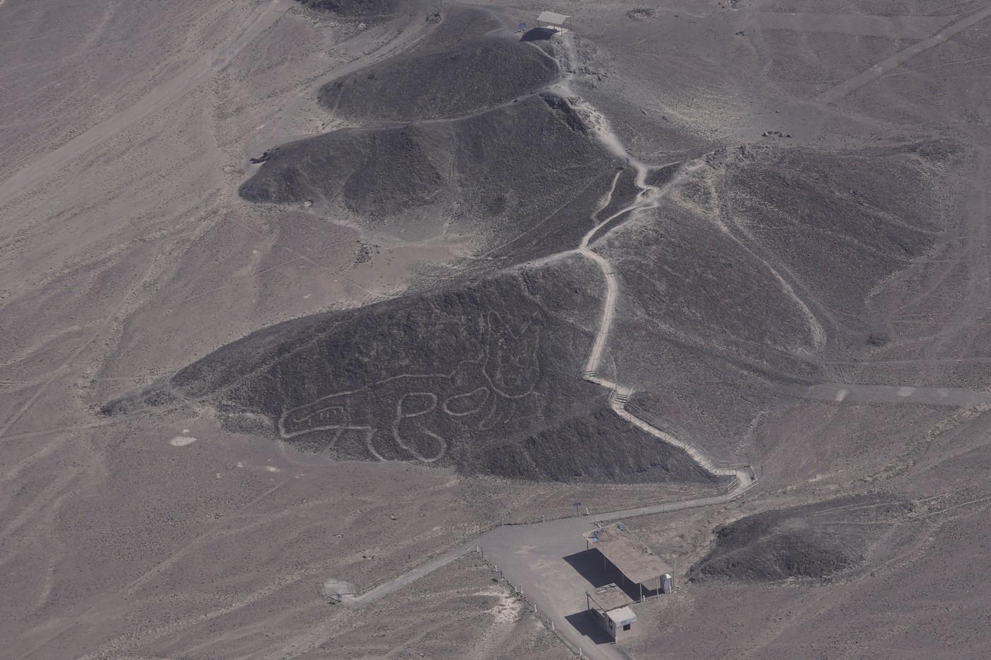 Letecký pohled na jeden z geoglyfů na peruánské planině Nazca.