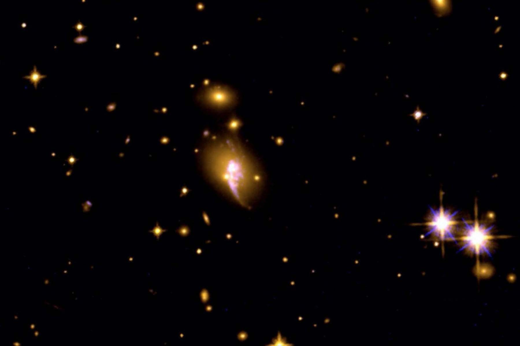 Kupa galaxií CHIPS 1911+4455 okem Hubbleova dalekohledu.