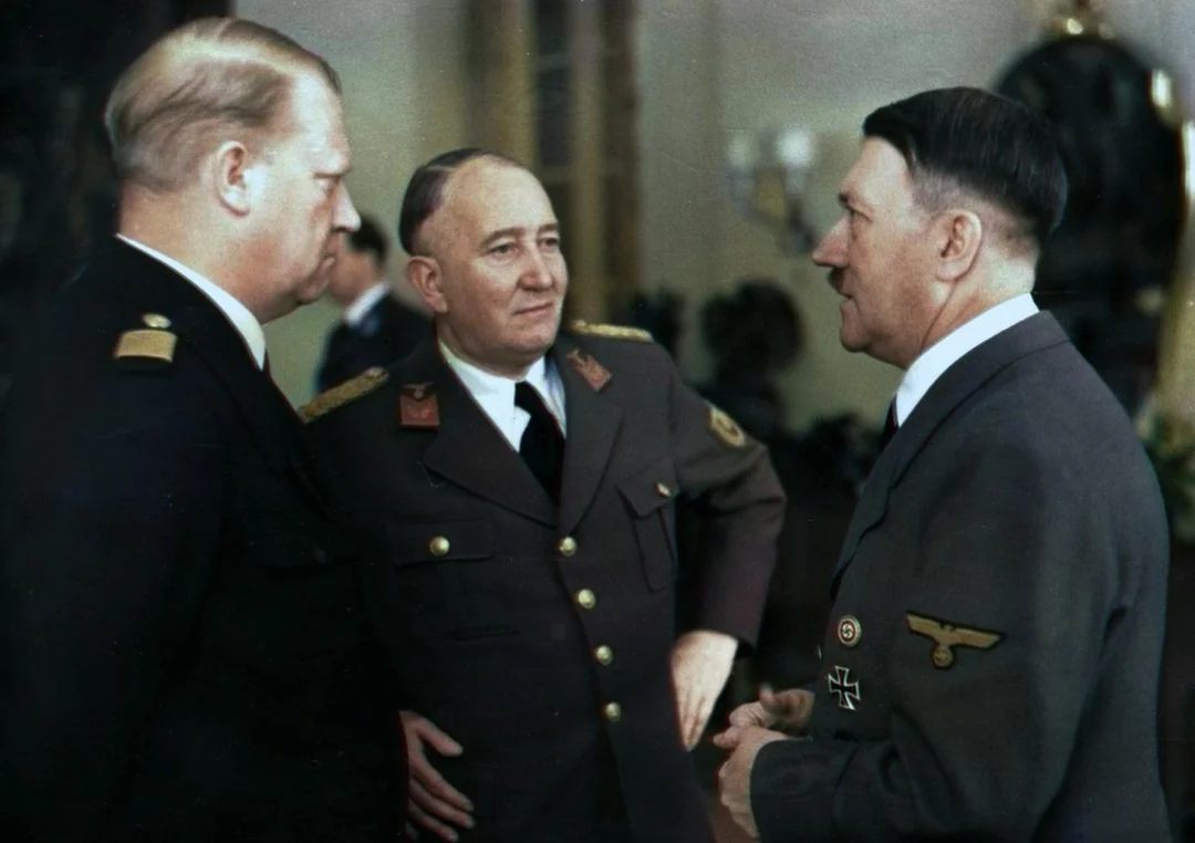 Norský fašistický politik Vidkun Quisling s ministrem Hagelinem a Hitlerem. (foto: Wikimedia Commons, PDM 1.0)