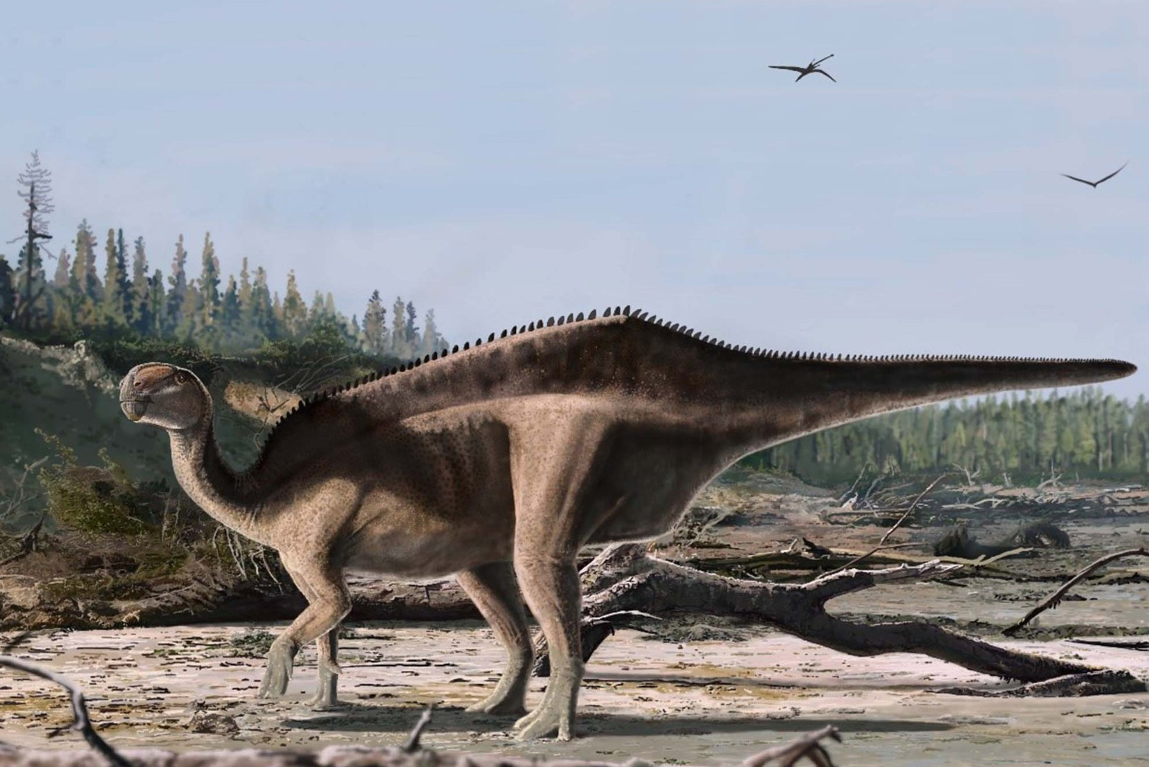 Istiorachis macarthurae z ostrova Wight se pyšnil působivou hřbetní plachtou. (ilustrace: Natural History Museum, James Brown (Papers in Palaeontology), CC BY-SA 4.0)