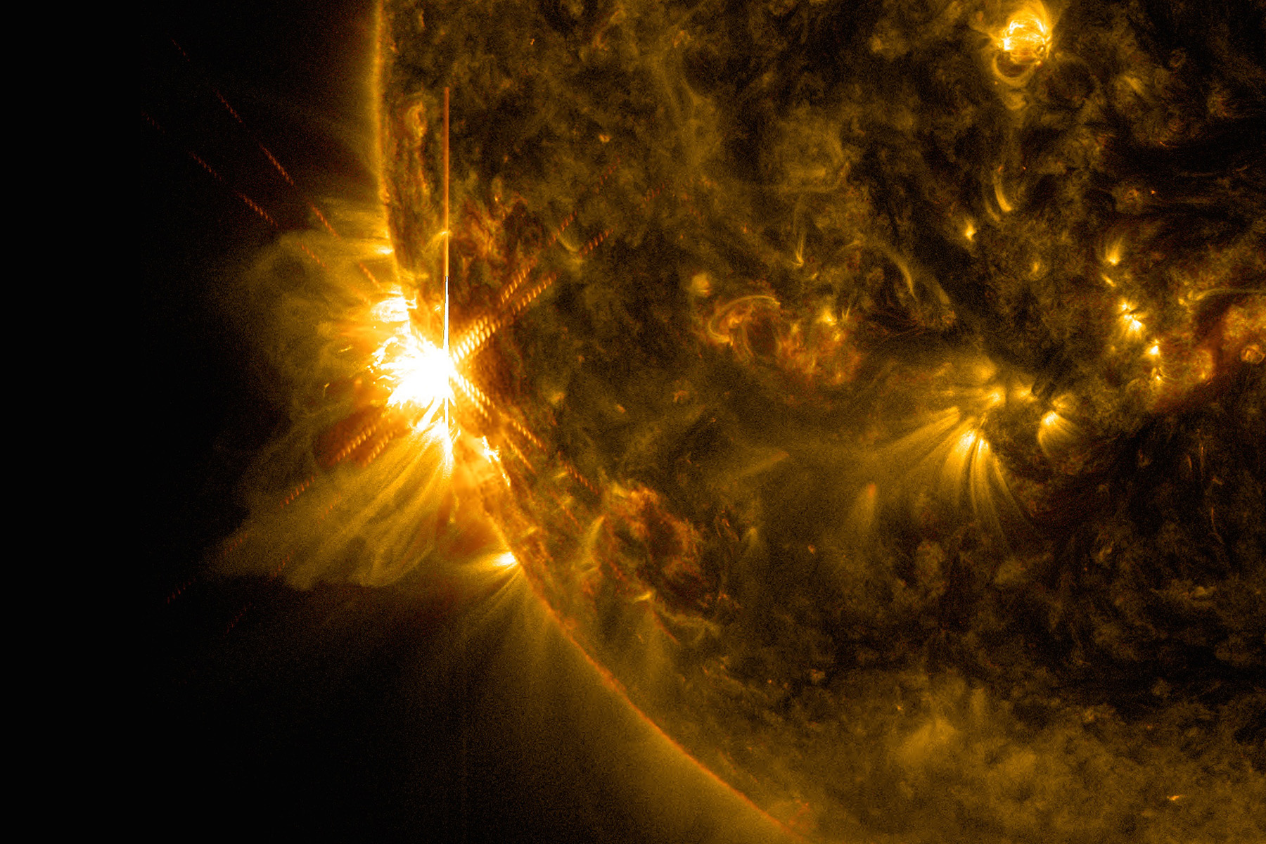 Sluneční erupce jak ji zachytila v roce 2014 observatoř SDO.