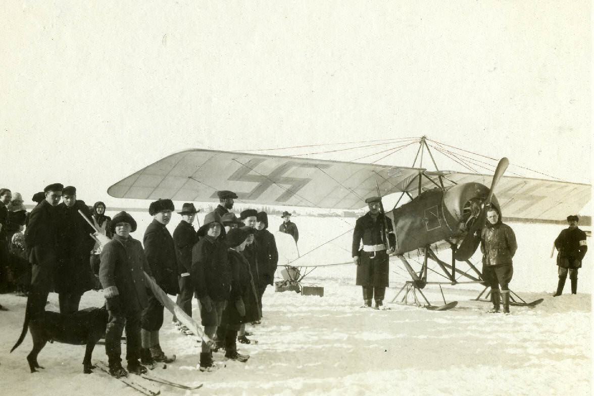První stroj daroval finskému letectvu Eric von Rosen, což vzbudilo velkou pozornost veřejnosti. Jednalo se o Thulin typ D. (foto: Wikimedia Commons, Otavan Kirjapaino, PDM 1.0)