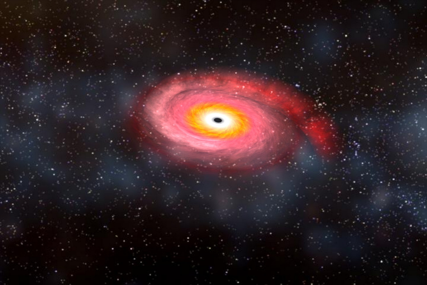 Mohou pohltit hvězdy, plyn i celé galaxie – ale co vlastně určuje, kam až může černá díra vyrůst? (ilustrace: NASA, Dana Berry, CC BY 4.0 )