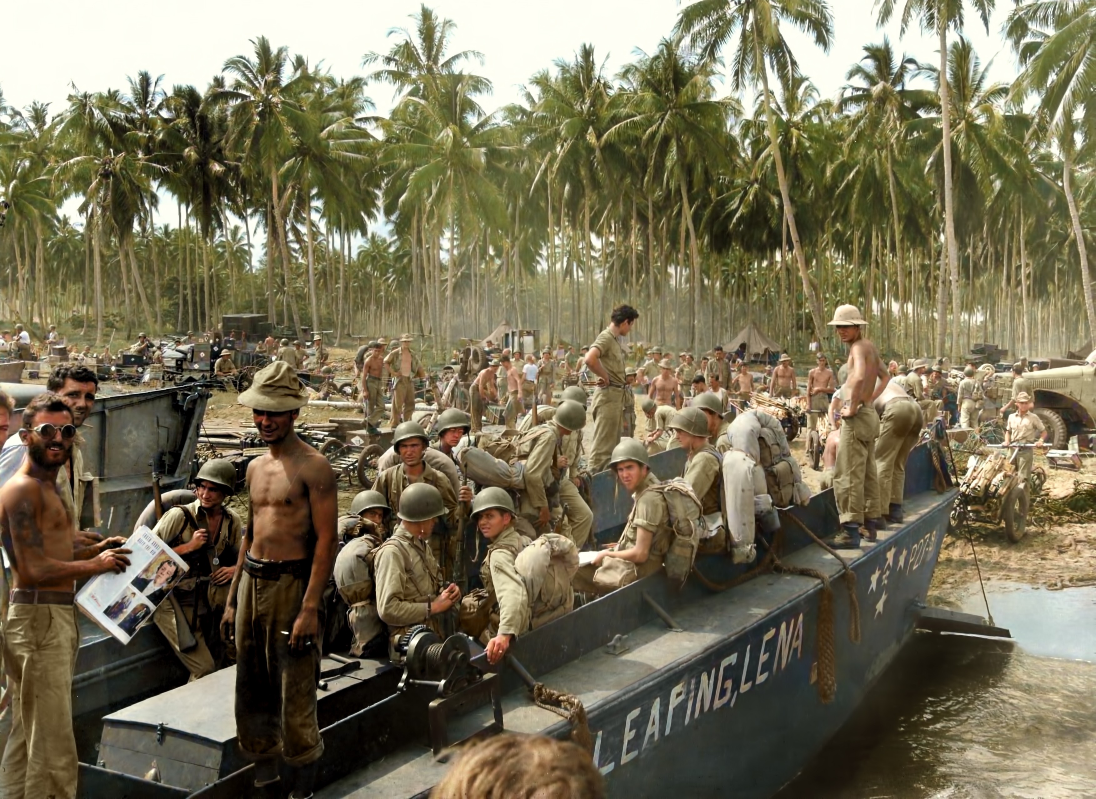 Američtí pěšáci se naloďují na čluny během bojů na Guadalcanalu. V létě 1944 se měl stát cílem vylodění Mariánské ostrovy. (Foto: Profimedia)