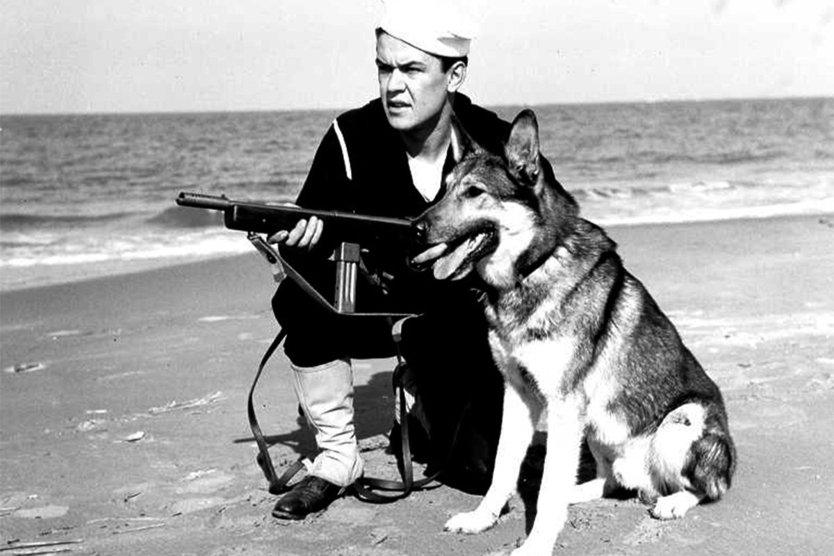 Příslušník americké pobřežní stráže vyzbrojený samopalem M50 na propagační fotografii. (foto: Wikimedia Commons, PDM 1.0)