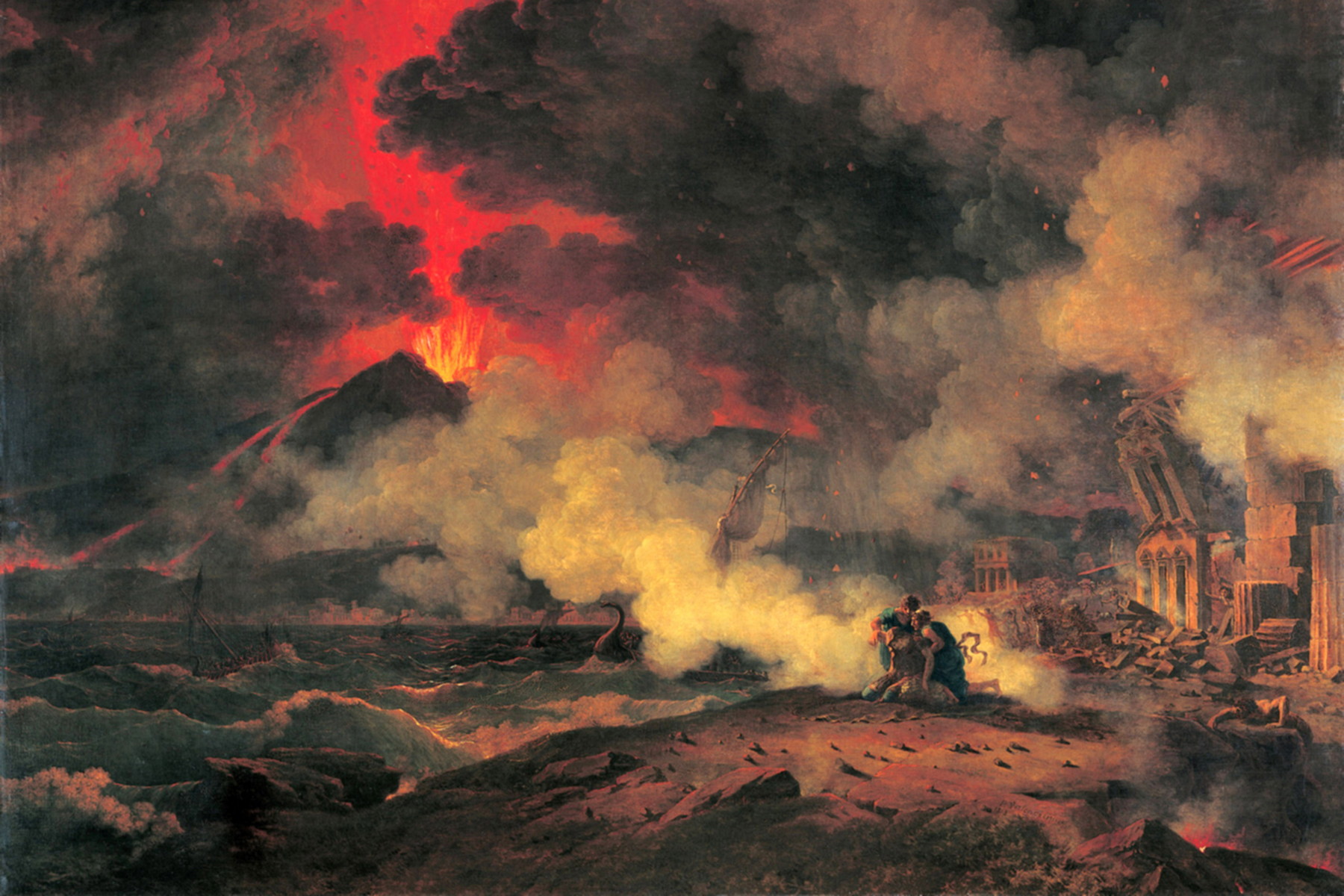 Autor obrazu Pierre-Henri de Valenciennes se stal svědkem erupce Vesuvu v roce 1779 a svoje dojmy využil k zachycení Pliniovy smrti ve Stabiích. (ilustrace: Wikimedia Commons, Didier Descouens, CC BY-SA 4.0)