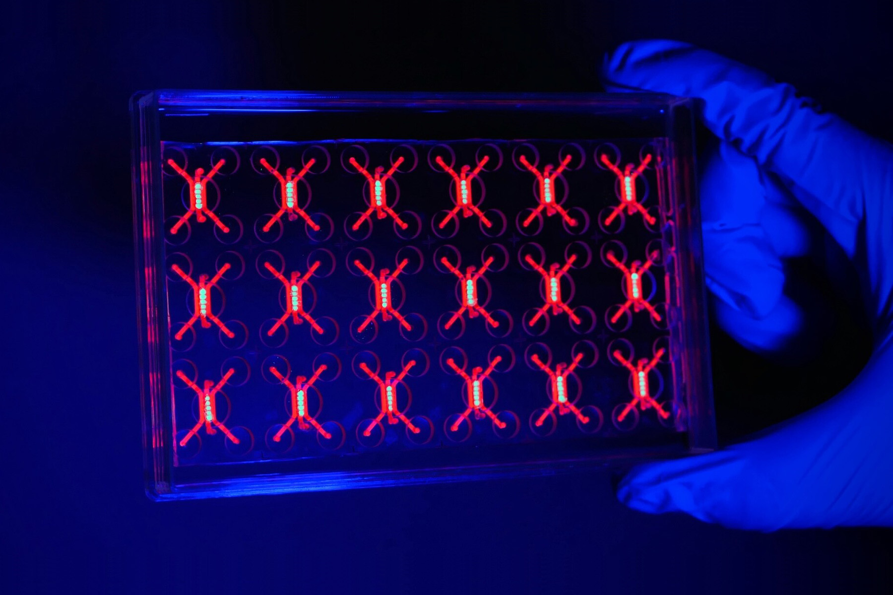 Model nádoru plic na čipu pomohl odhalit slabinu nádoru a využít ji ve prospěch léčby geneticky upravenými bílými krvinkami. (foto: University of Pennsylvania, Dan Dongeun Huh, CC BY-SA 4.0)
