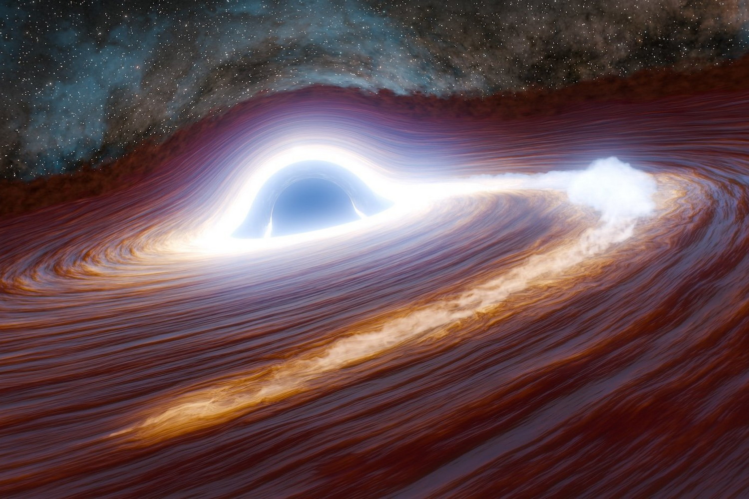 Vizualizace supermasivní černé díry, která trhá na kusy neopatrnou hvězdu. (ilustrace: Caltech/R. Hurt, CC BY-SA 4.0)