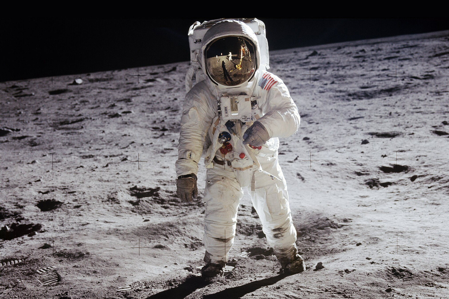 Při misi Apollo 11 lidé poprvé stanuli na povrchu Měsíce. Došlo k tomu 20. července 1969. (foto: Wikimedia Commons, NASA/Neil A. Armstrong, PDM 1.0)