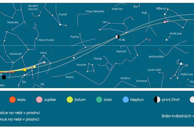 Noční obloha v prosinci: Prozkoumejte tajemnou Miru a mlhovinu Lebka