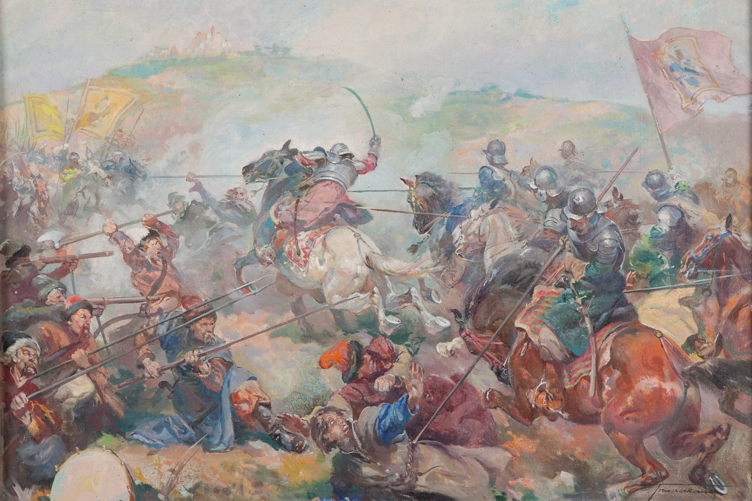 Bitva u Orši představovala největší porážku Moskvy v 16. století. (ilustrace: MutualArt, Antoni Trzeszczkowski, CC BY 4.0)
