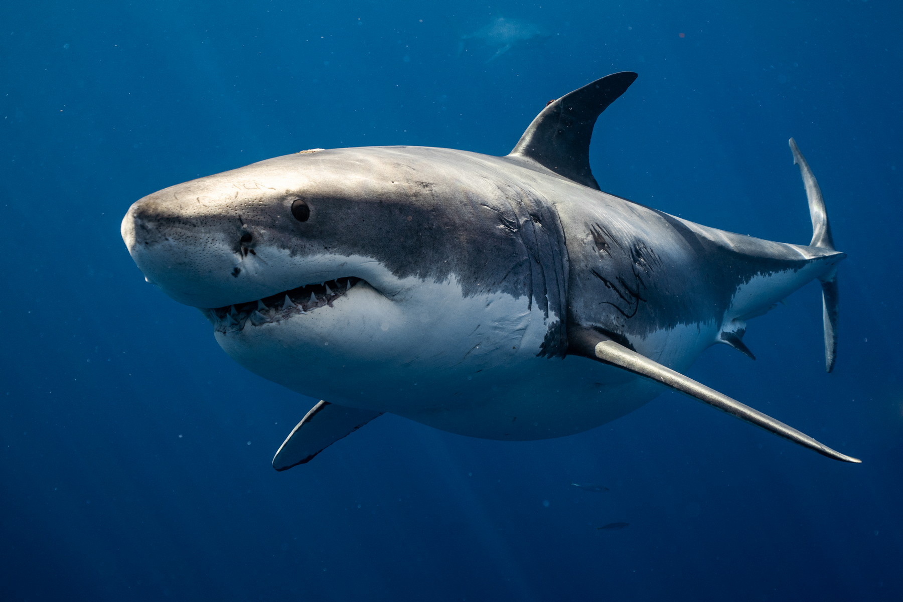 Zatímco dnešní velcí bílí žraloci dorůstají okolo šesti metrů, jejich prehistorický příbuzný měřil přibližně osm metrů. (foto: Shutterstock)