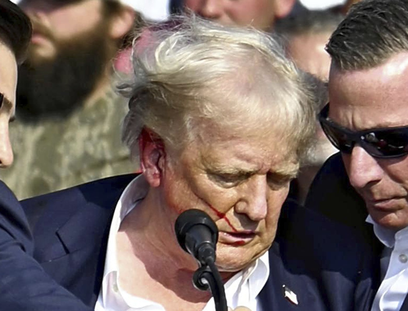 Postřelený Donald Trump na předvolebním mítinku ve městě Butler v Pensylvánii. (foto: Profimedia/ČTK)