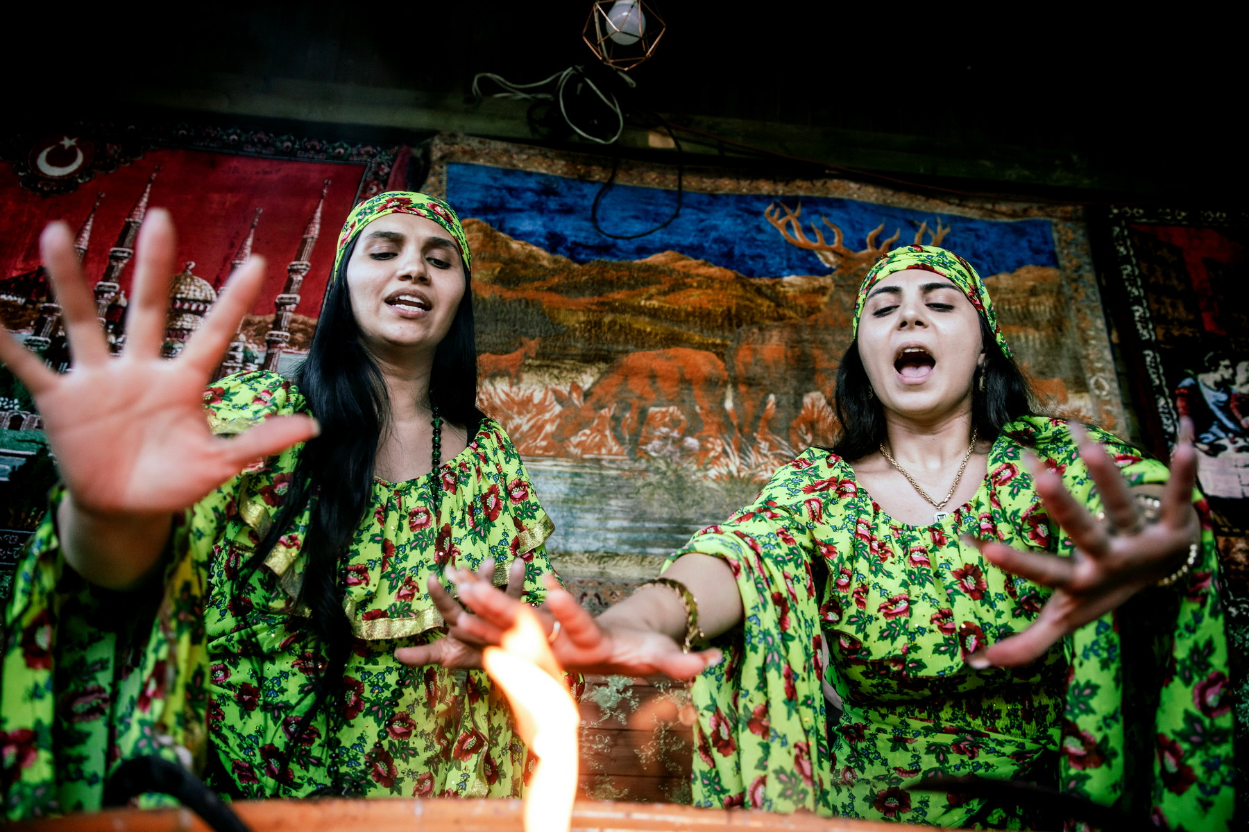Cassandra (vlevo) a Anna začínají rituál zapálením ohýnku. Později na dvoře vzplane pořádná vatra. (foto: David Těšínský - se souhlasem k publikování)
