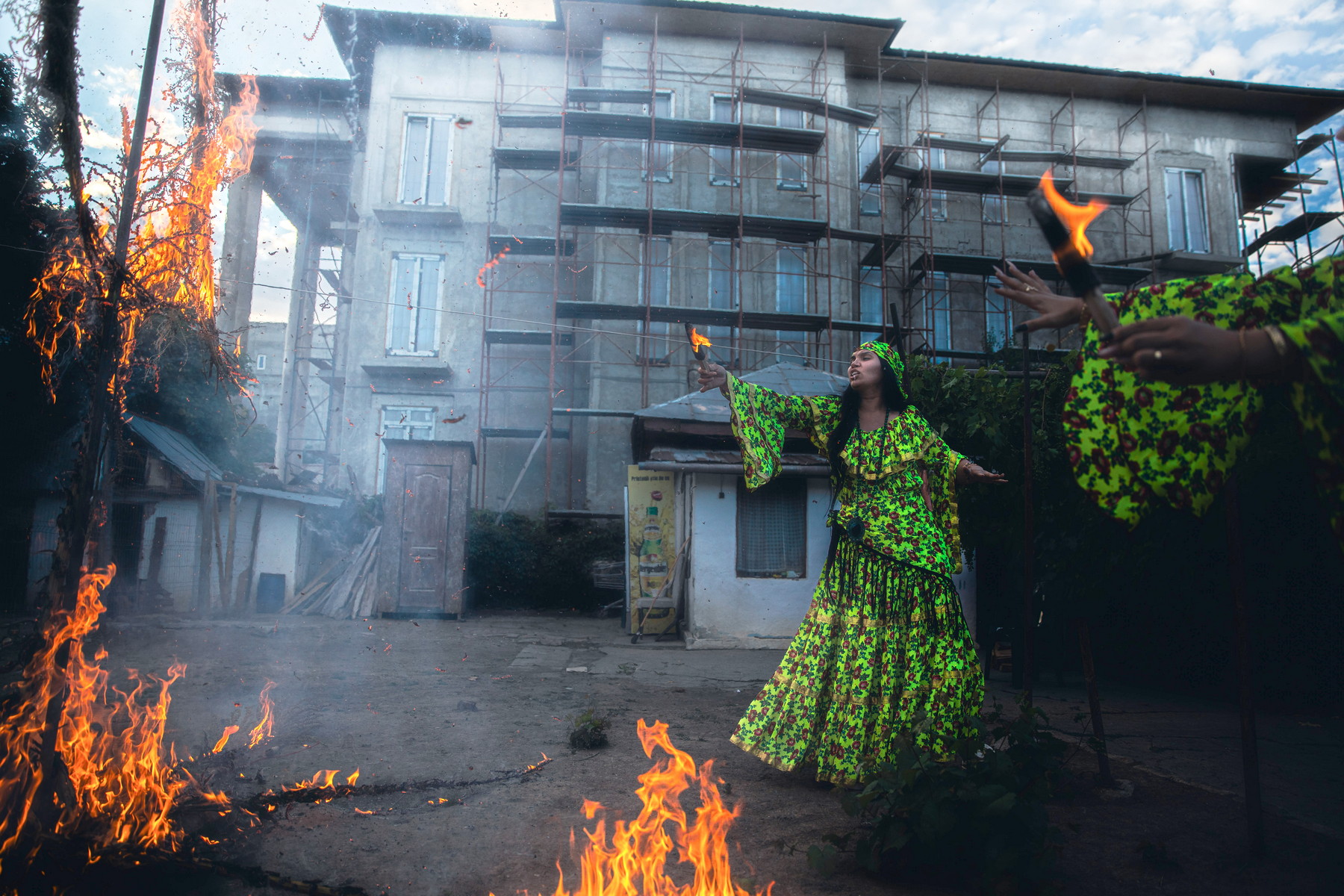 Oheň celé místo čistí od zlých vlivů. V pozadí stojí budoucí čarodějnická škola. (foto: David Těšínský - se souhlasem k publikování)