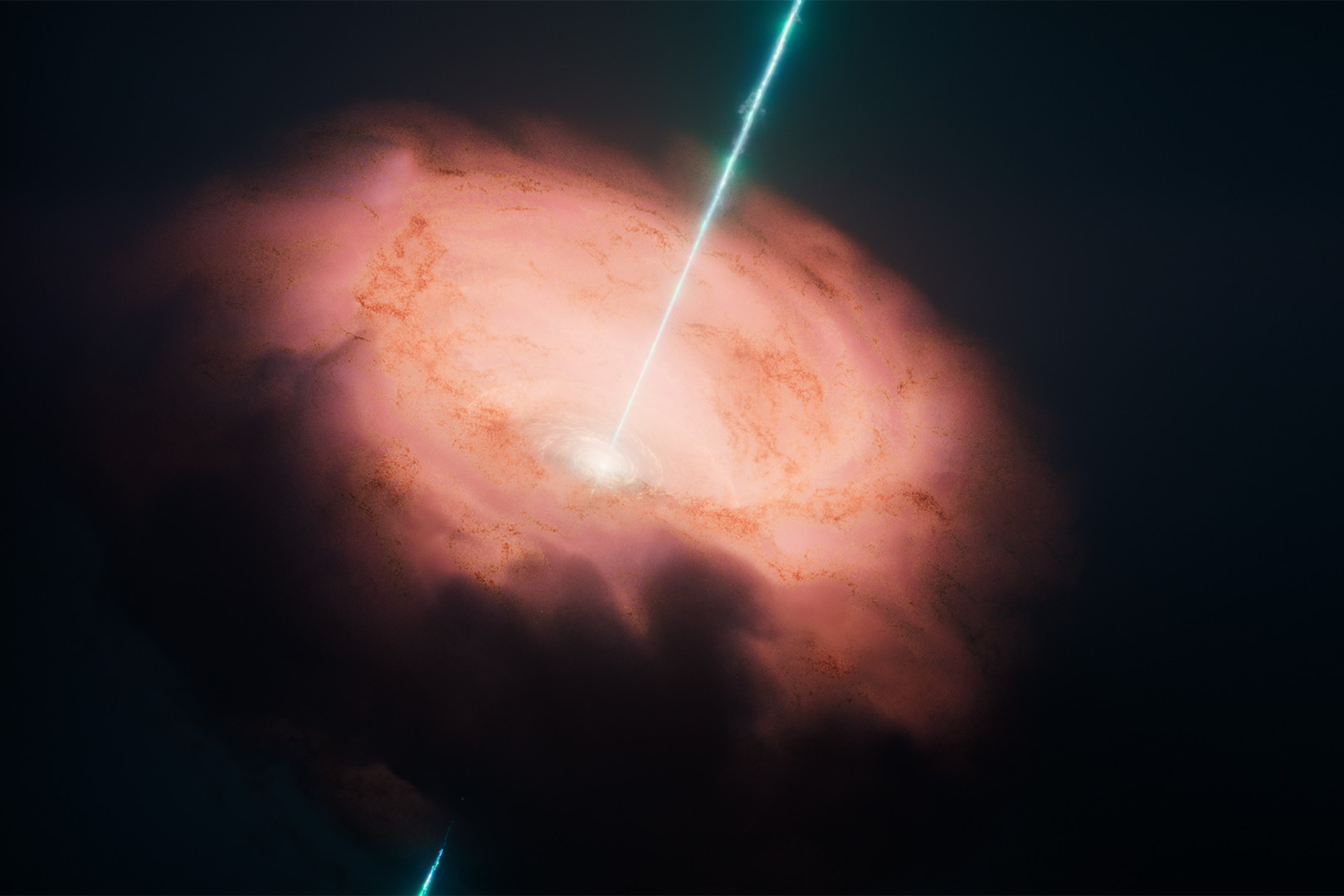 Nejintenzivnější záře v infračerveném spektru je patrná v těsné blízkosti černé díry galaxie Kružítko. (ilustrace: NASA/ESA, Ralf Crawford, CC BY-SA 4.0)