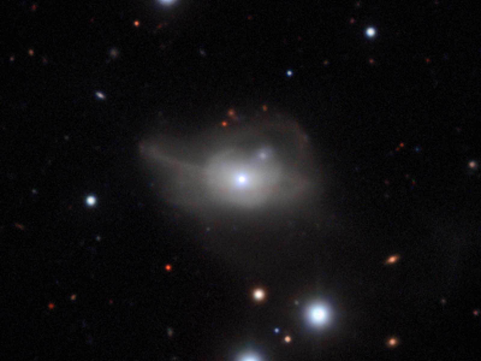 Snímek pořízený přístrojem MUSE zachycuje aktivní galaxii Markarian 1018, v jejímž centru se nachází superhmotná černá díra. Slabé světlejší oblouky táhnoucí se kolem středu galaxie jsou výsledkem interakce při procesu slévání s jinou galaxií v nedávné minulosti.