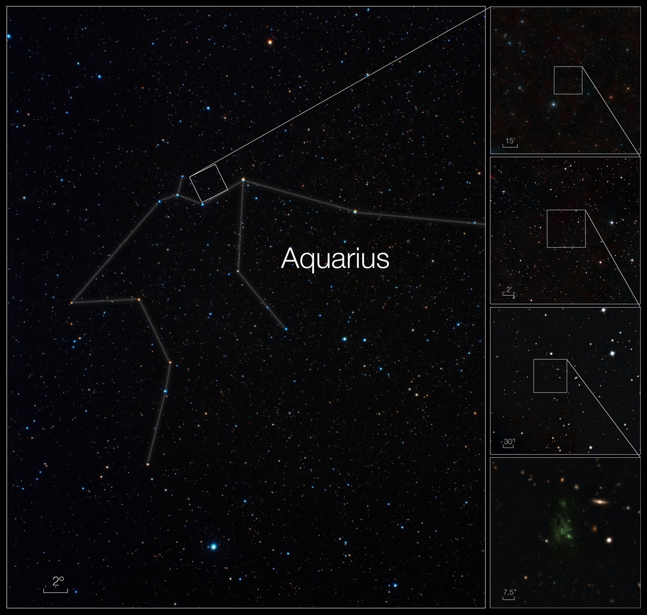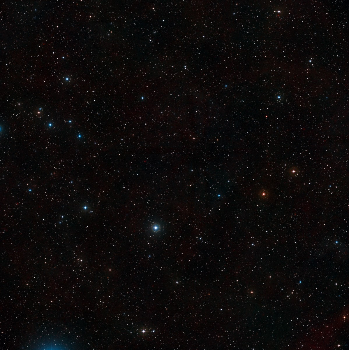 Tento snímek ve viditelném světle zachycuje oblast kolem obří kosmické kaňky, objektu LAB-1 (Lyman-alpha Blob). Byl vytvořen na základě fotografií pořízených přes modrý a červený filtr, které jsou součástí archivu přehlídky Digitized Sky Survey 2. Objekt LAB se nachází ve středu snímku.